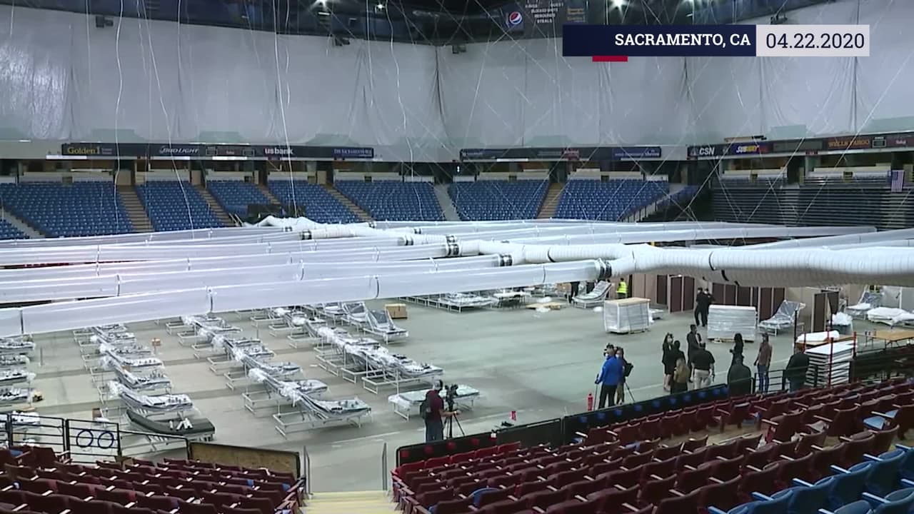 Como parte de los esfuerzos de California para estar preparado para un posible aumento en hospitalizaciones de pacientes con coronavirus, el estadio que una vez fue el hogar del equipo de baloncesto profesional Sacramento Kings ahora fue convertido en un centro médico.