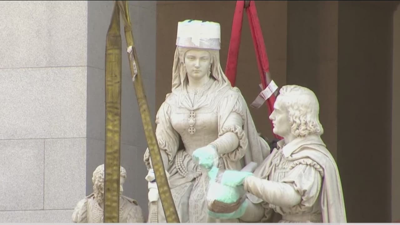 Después de 137 años remueven la estatua de Cristóbal Colón y la reina Isabel del Capitolio en Sacramento