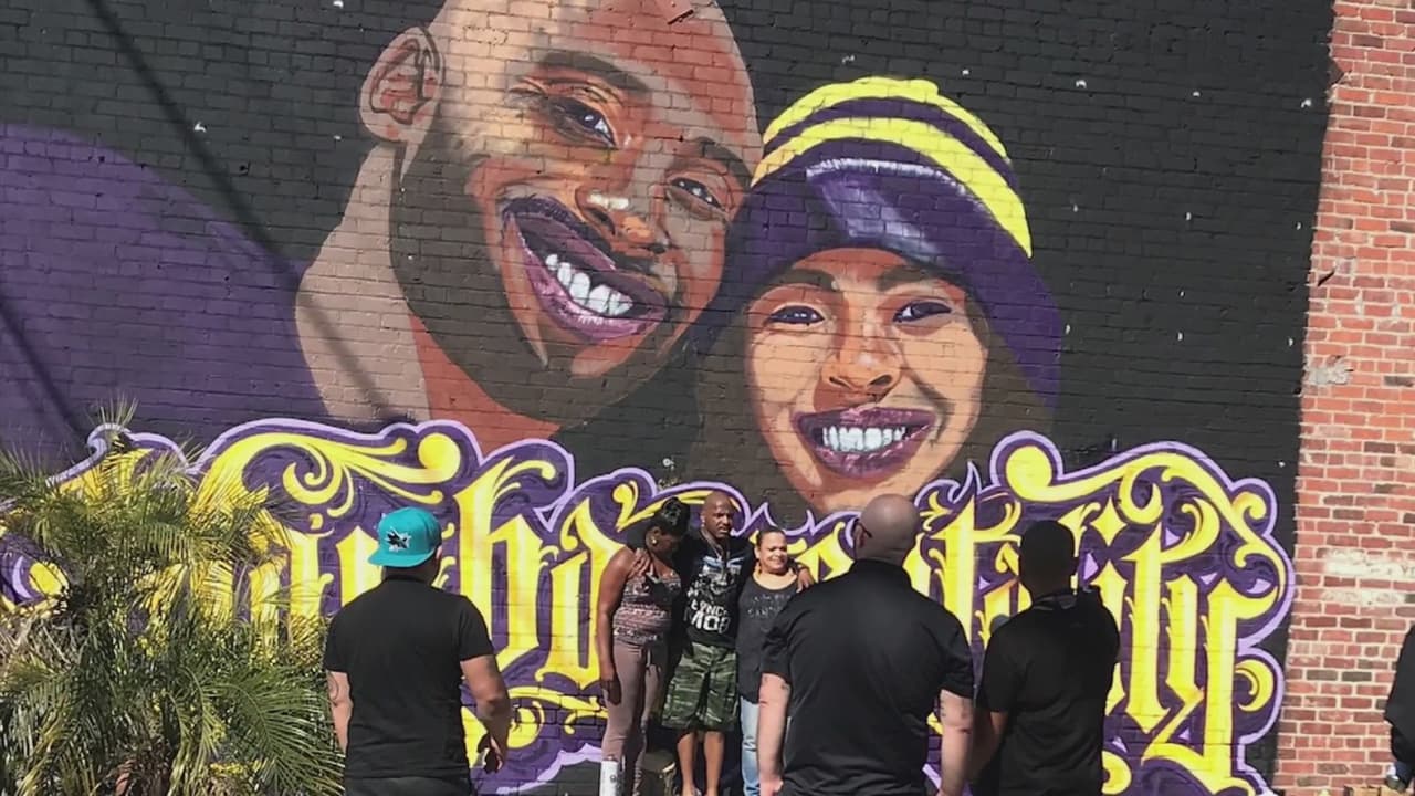Dos artistas de Stockton realizan un mural en honor a Kobe Bryant y su hija