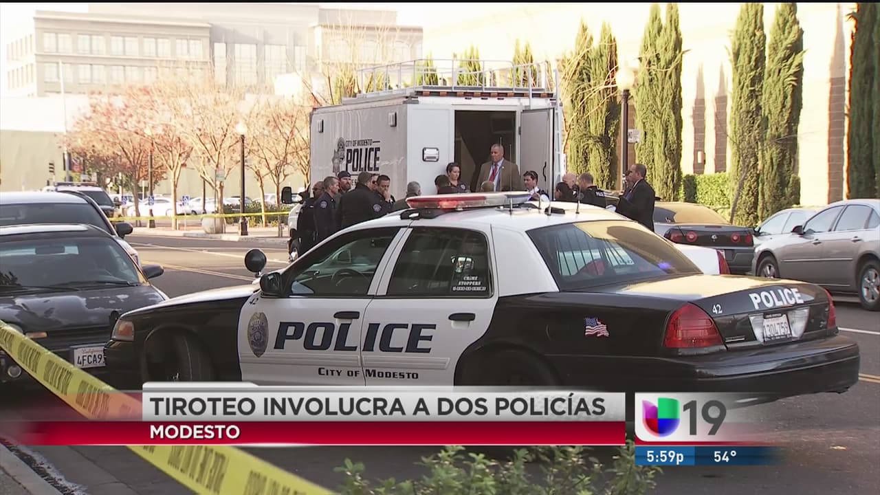 Según testigos, los policías perseguían a un sujeto en bicicleta, que resultó herido en un estacionamiento de Modesto.
