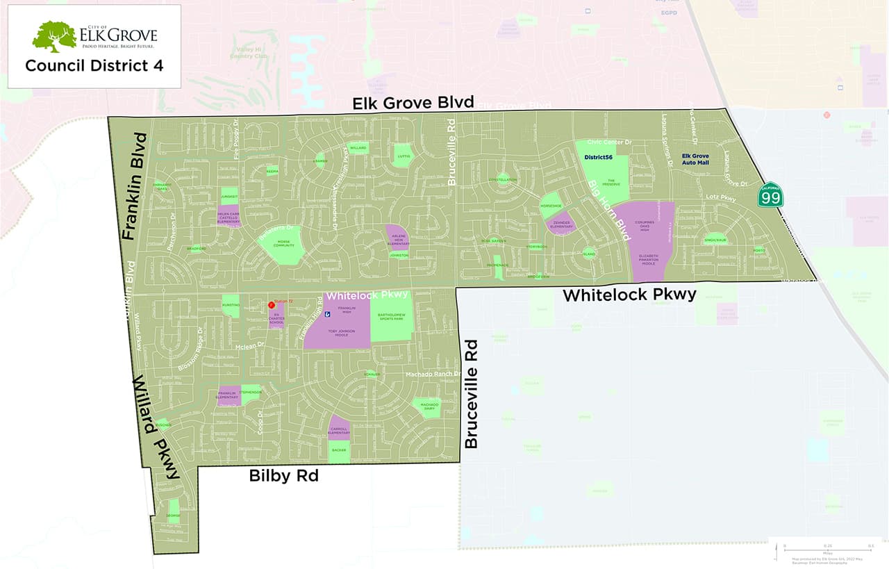 En esta imagen puedes observar cuáles son los límites del distrito 4 de Elk Grove.
