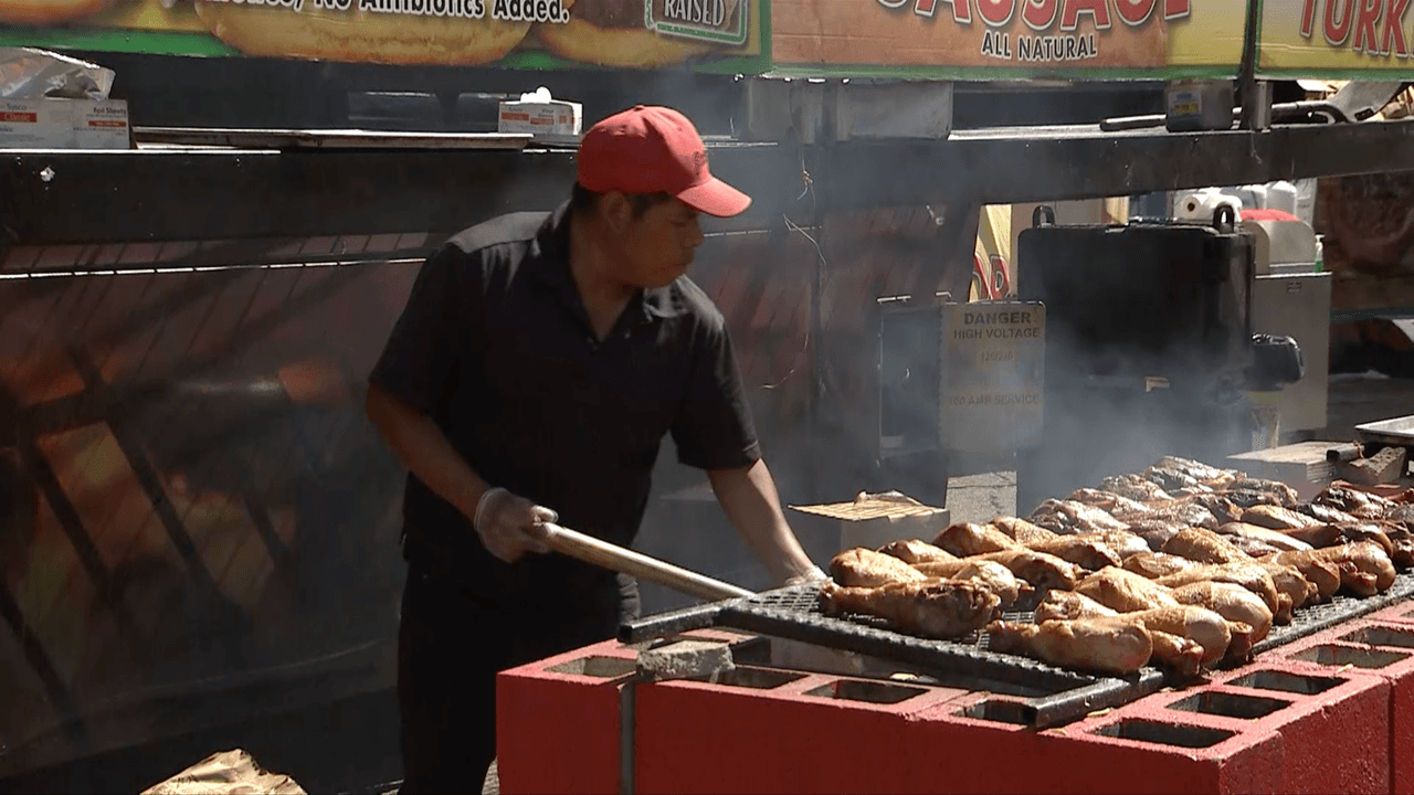 “Estoy bien orgulloso de trabajar con estos compañeros. Me gusta cocinar, me gusta sacar adelante mi ‘jale’ (sic) […] para que tanto uno, como el patrón estemos contentos”, cuenta Efraín en entrevista para Univision 19, mientras alista el puesto de comida que opera en la Feria Estatal.