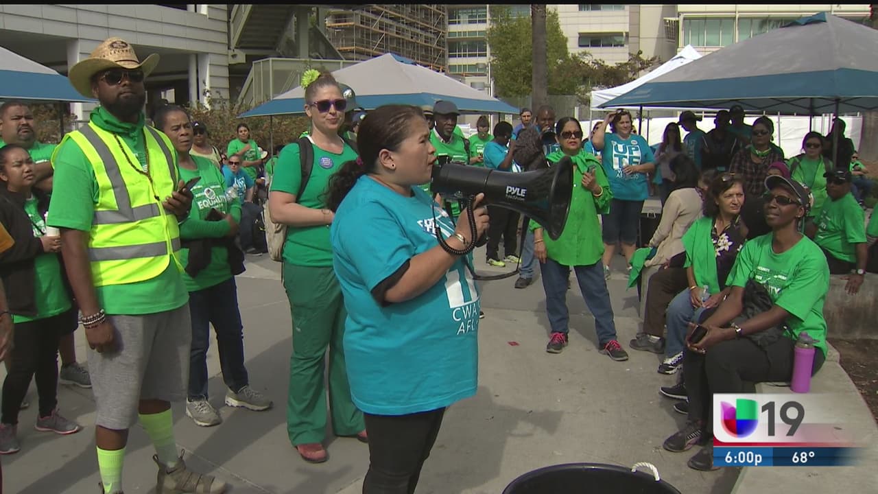 Empleados alzan huelga en UC Davis y otros centros médicos
