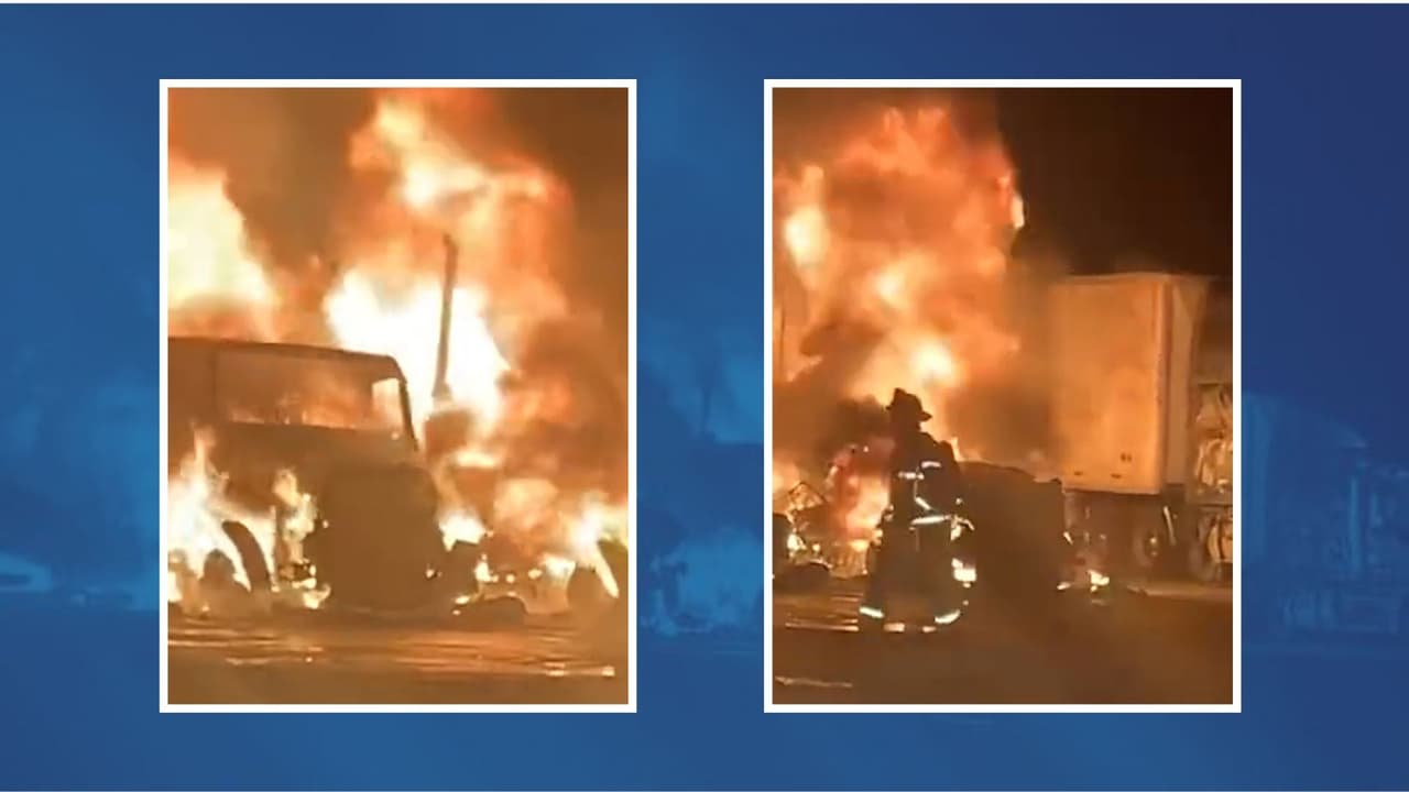 Envueltos en llamas: un gran incendio destruye 5 camiones en Sacramento