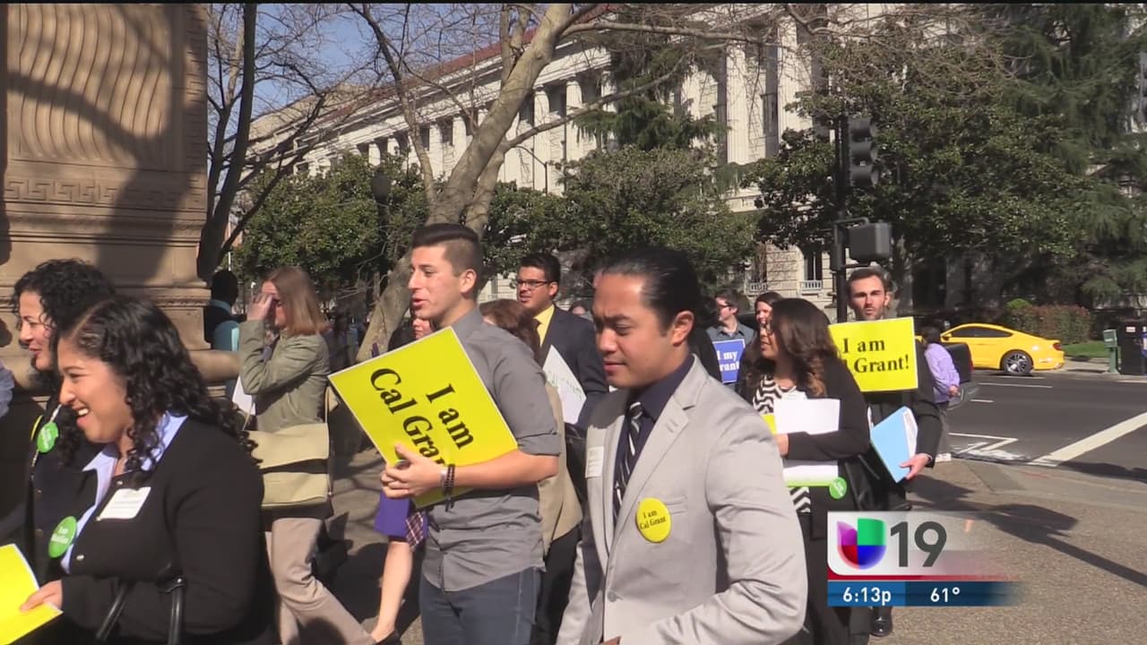Estudiantes de universidades llegaron hasta el Capitolio estatal para pedir a los asambleístas que no recorten las becas estatales o CALGRANT, para estudiantes de escuelas privadas.