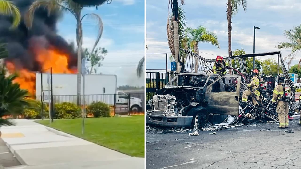 Equipos de bomberos y el CHP apagaron el incendio de un camión y se aseguraron de que no hubiera fugas de los materiales peligrosos que iban en el interior.