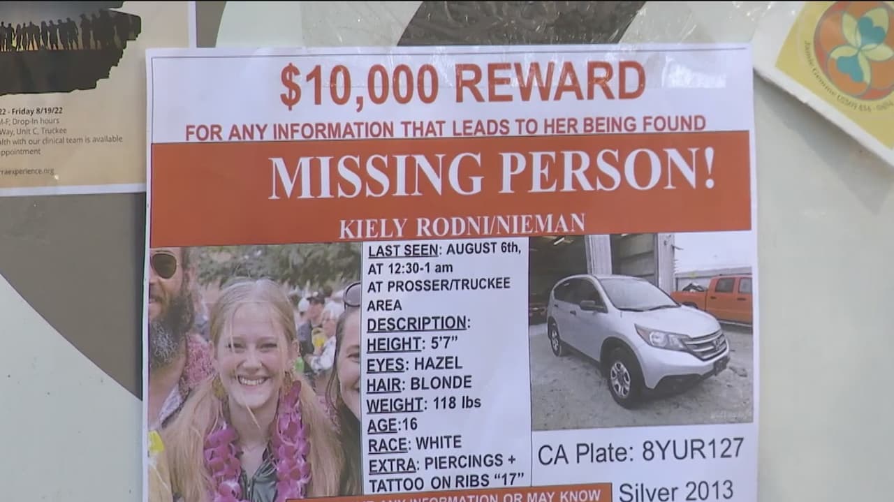 Kiely Rodni desapareció el 6 de agosto cuando iba a una fiesta. La policía del condado de Placer informó que la joven fue vista por última vez en una tienda en Truckee, vistiendo una blusa negra con tirantes y pantalones Dickies. Para reportar cualquier información sobre el paradero de Rodni, llamar al 530 886 5375.