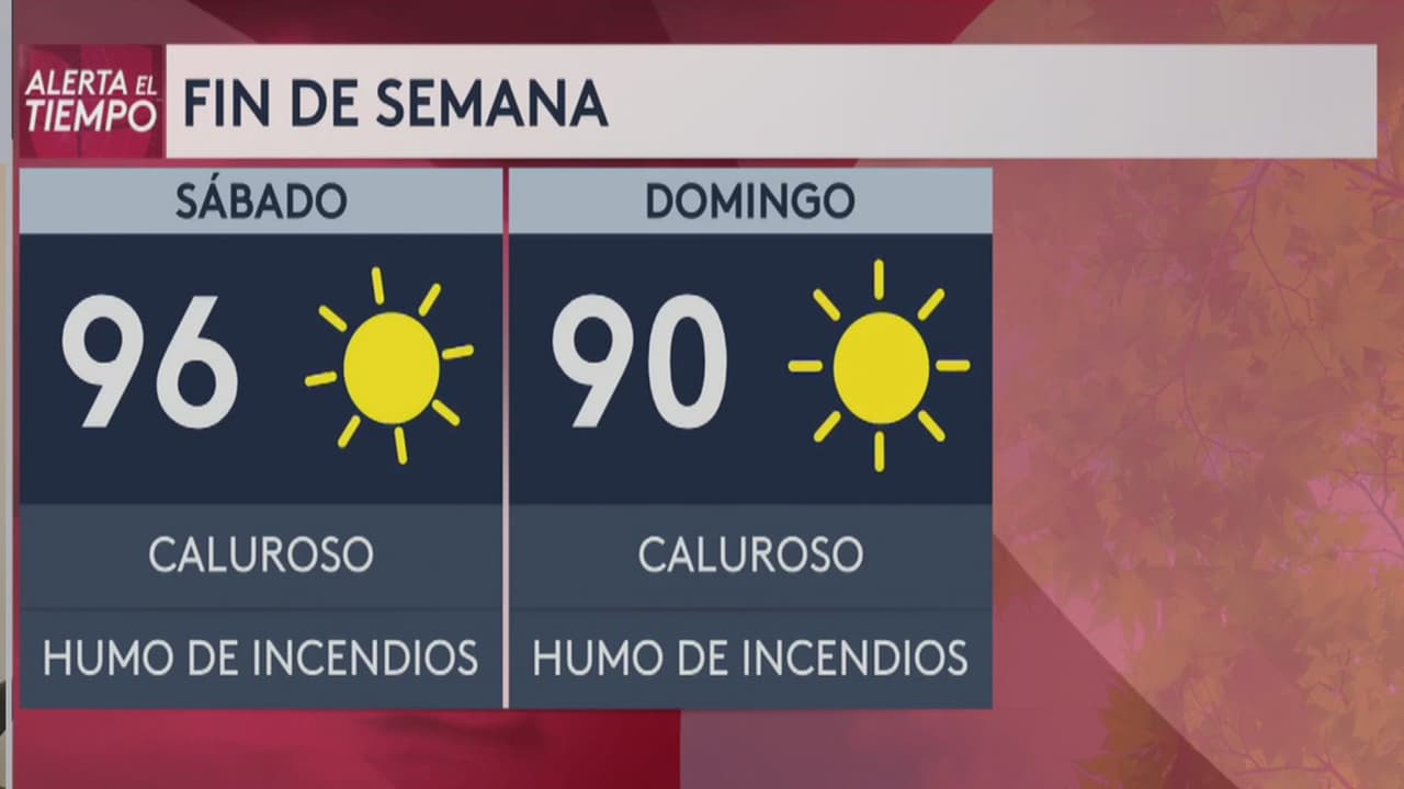 El humo de incendios forestales continúa concentrado en la región ocasionando mala calidad del aire mientras las temperaturas se mantienen cálidas en el rango de los 90°F.