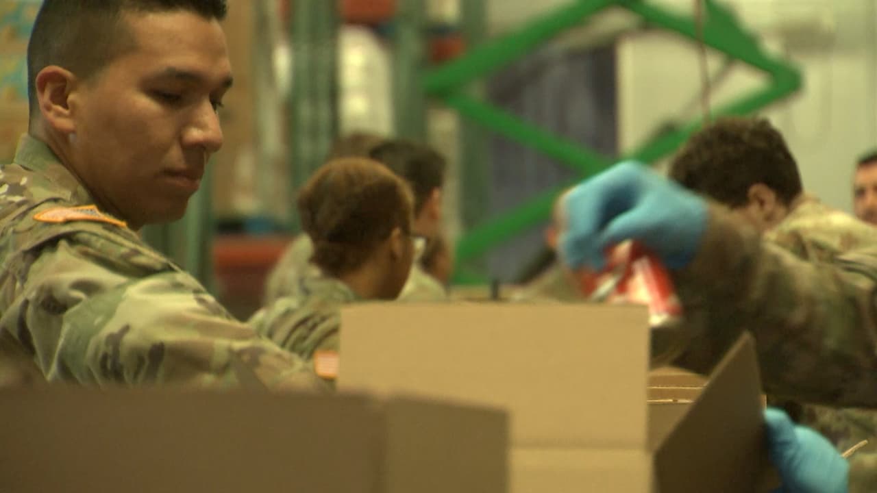 Guardia Nacional de California ayuda a bancos de comida distribuir alimentos a los afectados por el coronavirus