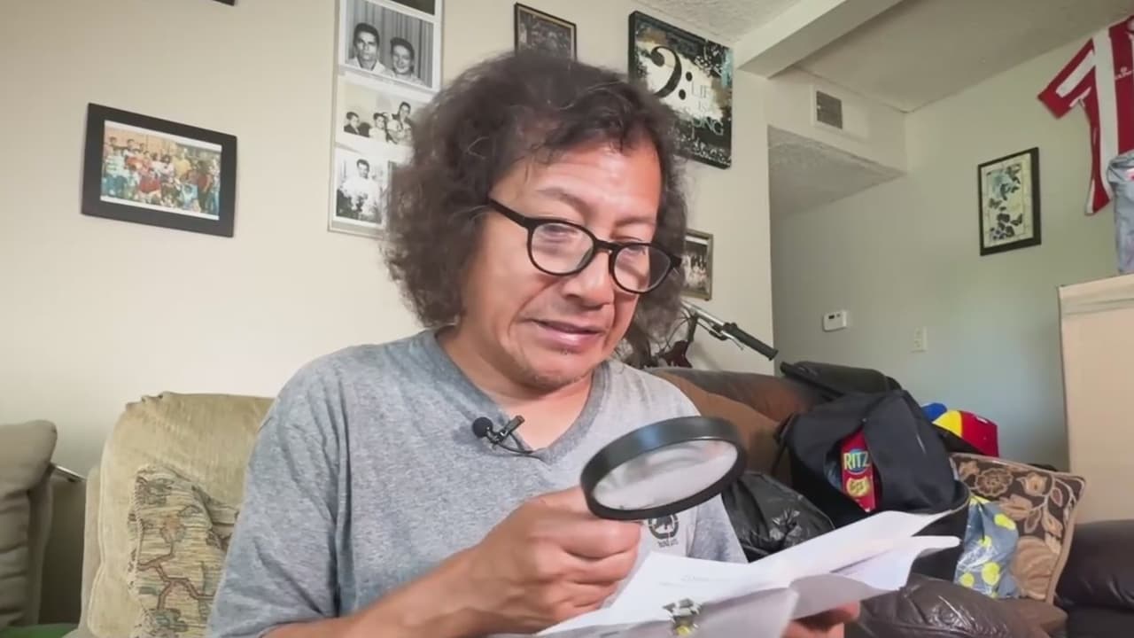 Elpidio Santiago sufre de cataratas y debe usar gafas y una lupa para leer, pues asegura que su visión es "como si trajera una escama gigante en cada ojo", por lo que desde hace un año recibió beneficios por parte del Departamento de California para su condición. Sin embargo, en enero dejaron de darle asistencia por falta de pruebas médicas, pues al parecer el doctor olvidó enviar una carta.