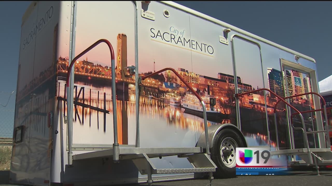 Este lunes se inauguró el programa piloto de baños portátiles en el distrito River en Sacramento, una localidad que enfrenta una gran cantidad de personas indigentes en sus calles.