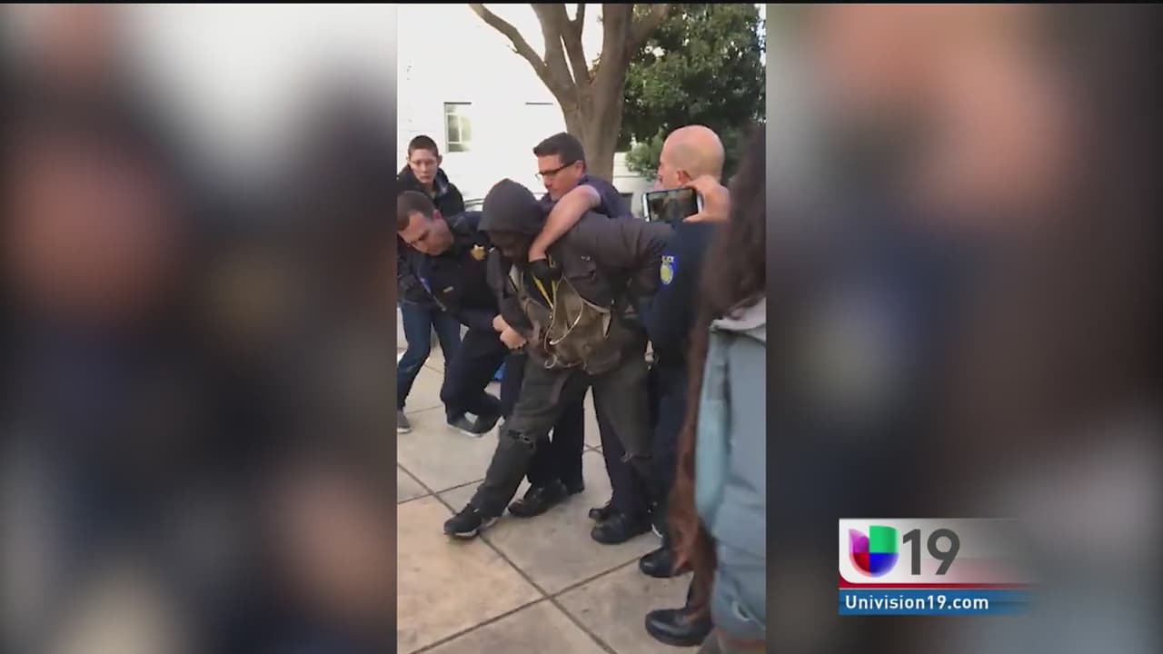Indigentes protestan frente a la cárcel del condado de Sacramento, por el arresto de algunos de sus compañeros este fin de semana.
