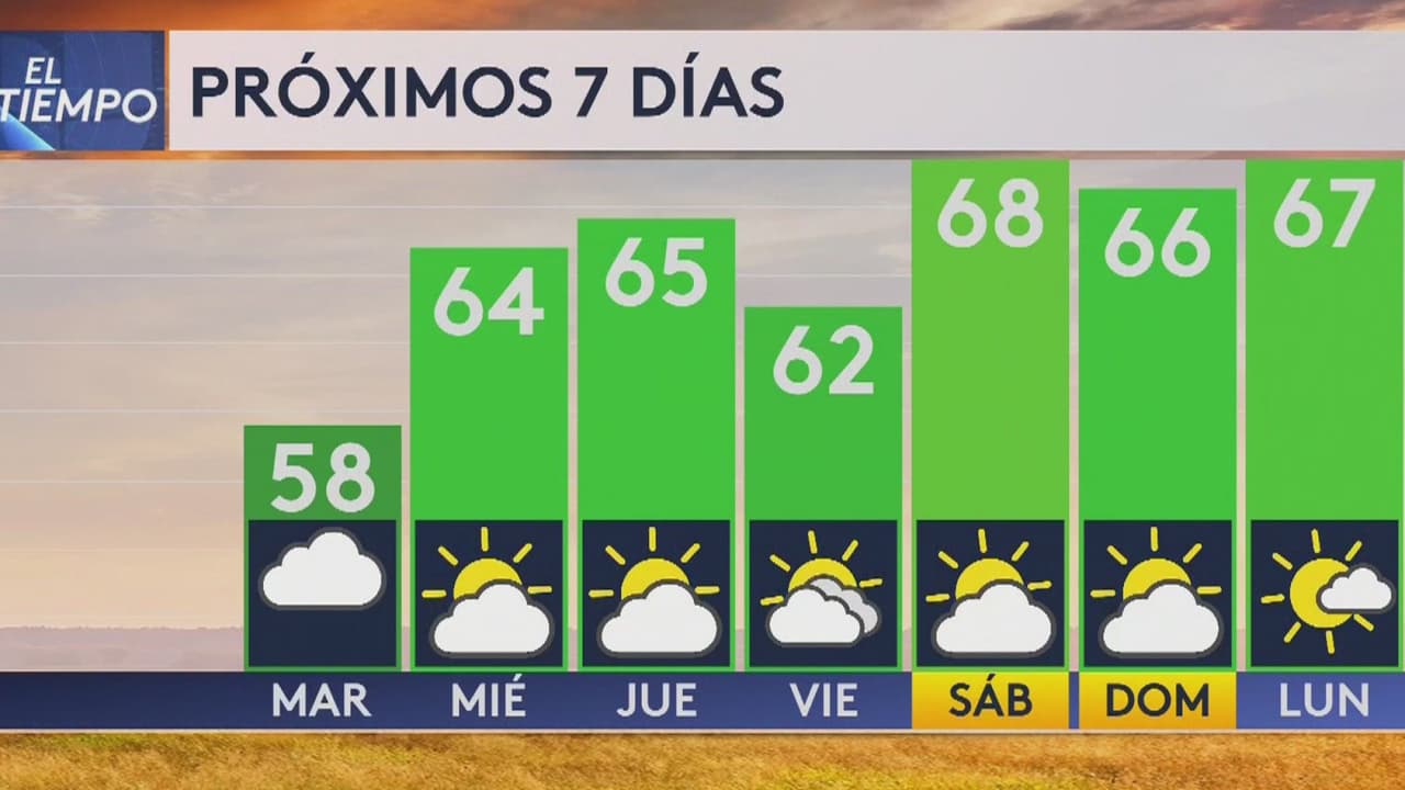 Espera temperaturas alrededor de los 60 grados Fahrenheit con cielos parcialmente soleados durante la tarde.
