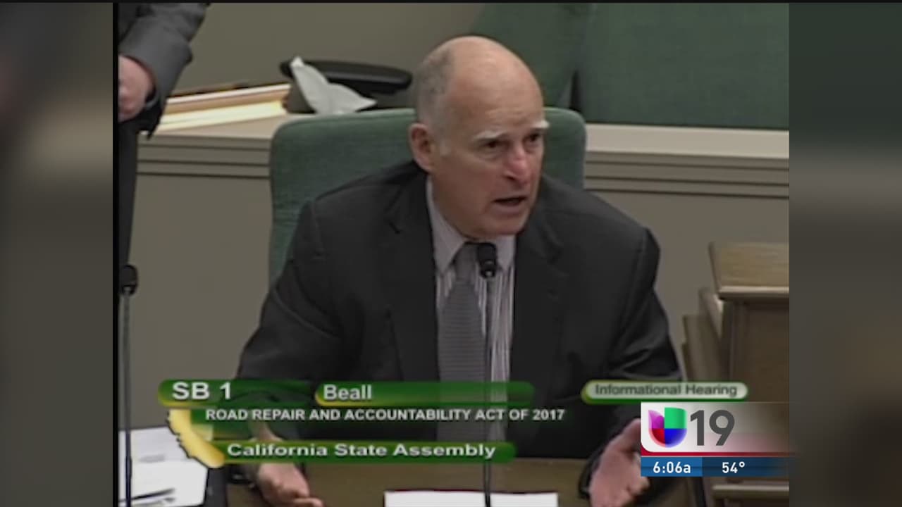 El gobernador de California presentó ante el Senado estatal un plan para reparar caminos y carreteras con ayuda de un impuesto a la gasolina.