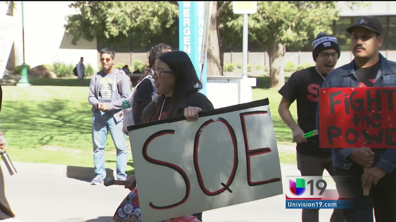 Alumnos de la Universidad estatal de California se manifestaron para exigir un aumento salarial a sus profesores.
