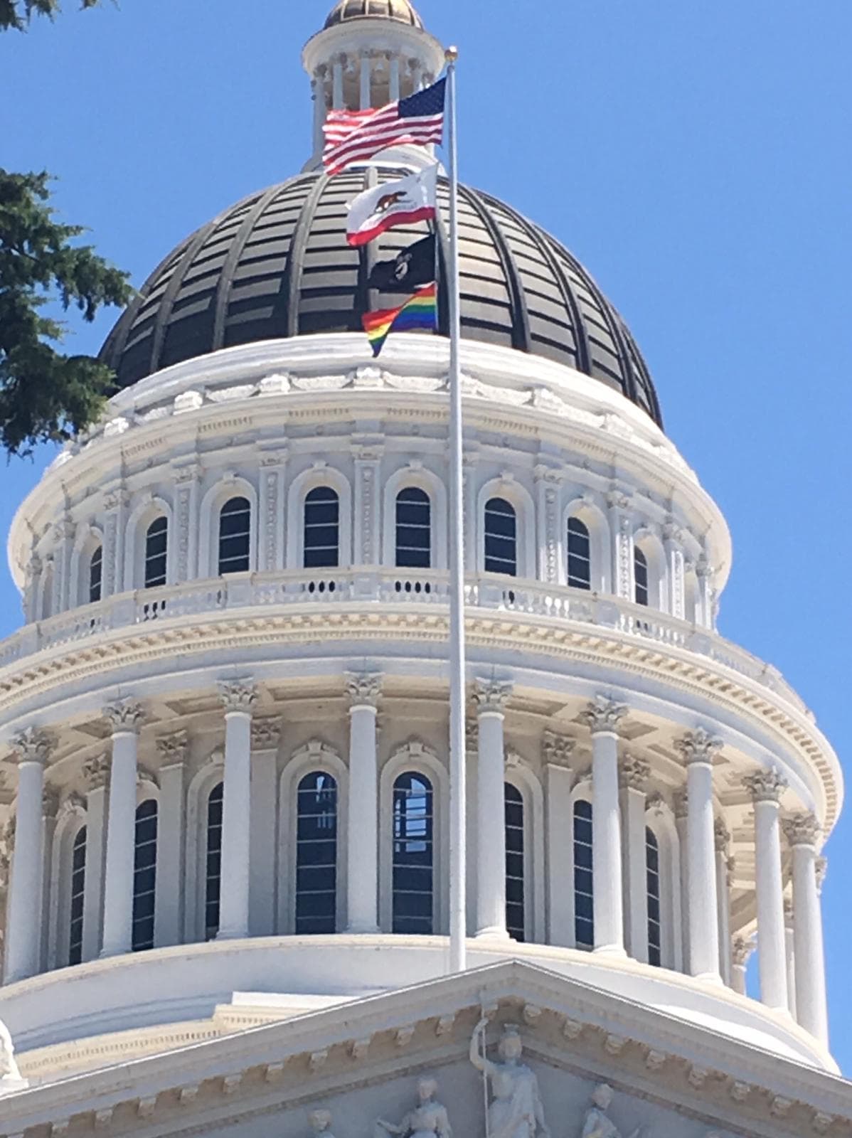 La bandera de orgullo LGBTQ ondea sobre el Capitolio estatal de California por primera vez