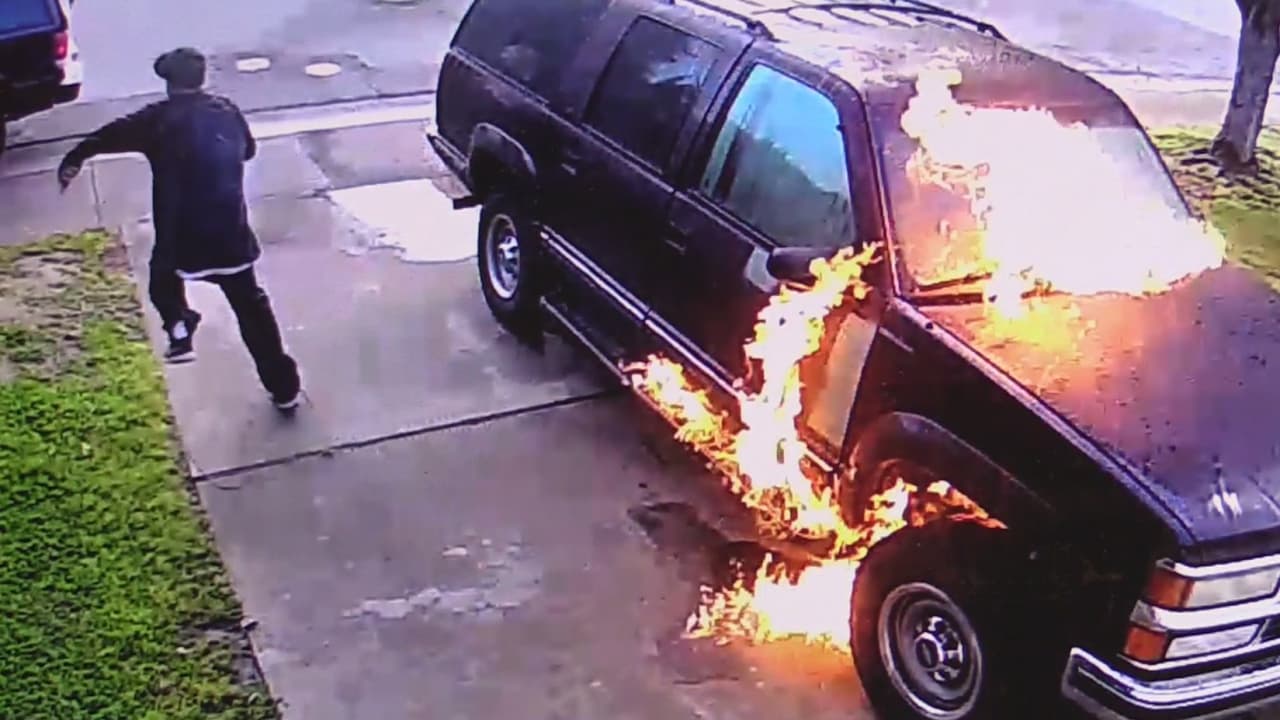 La Policía de Stockton busca a un hombre acusado de prenderle fuego a un auto a plena luz del día