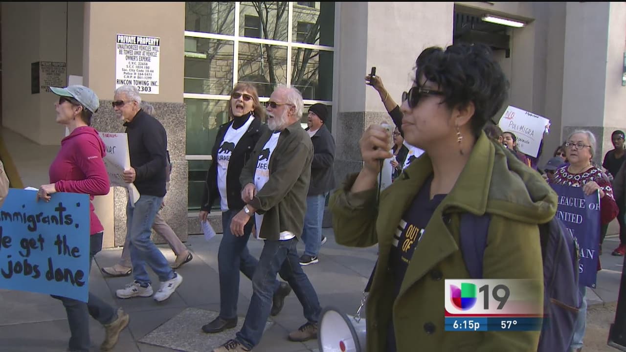Decenas de personas se dieron cita a las afueras del Capitolio estatal para protestar en contra de las órdenes ejecutivas de Trump en materia de inmigración y pidieron a policías estatales no colaborar con ICE.
