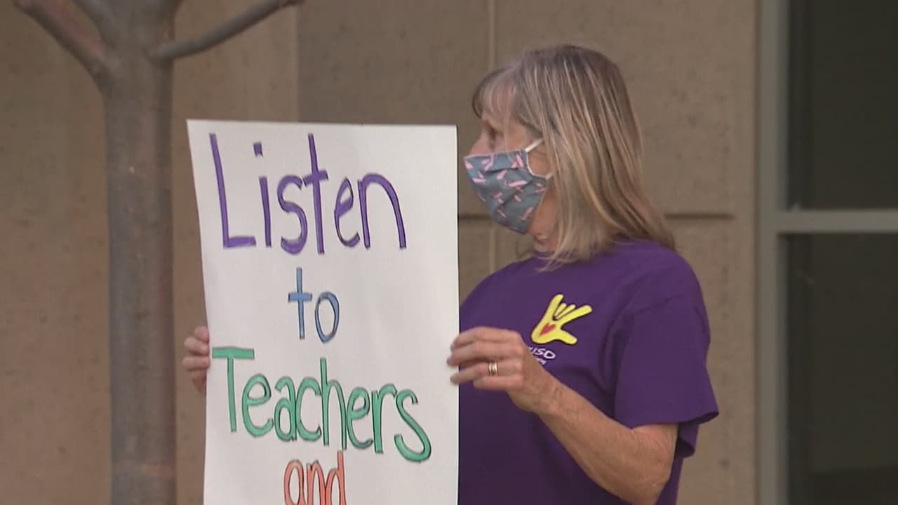 Maestros del distrito escolar Folsom Cordova protestan contra el regreso a clases presenciales