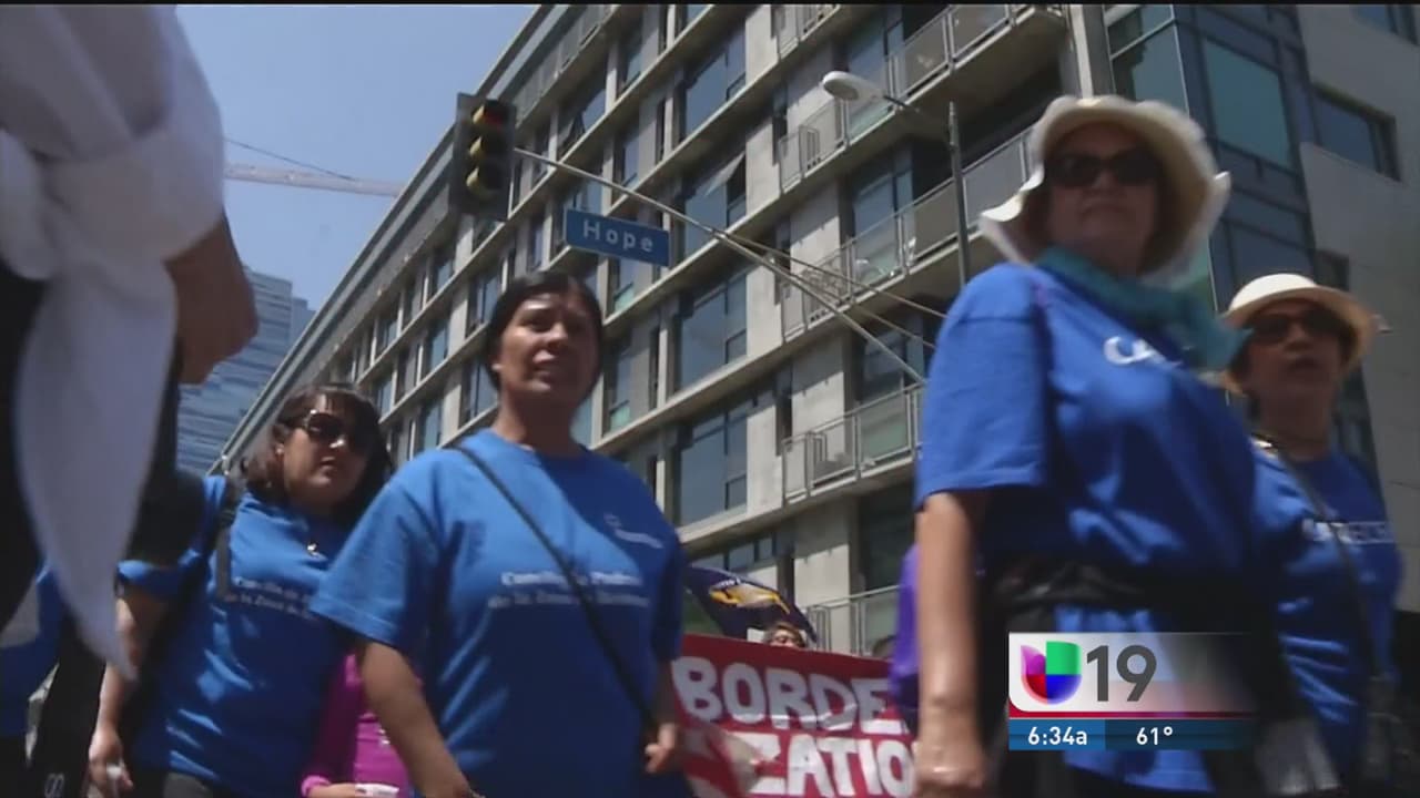 Manifestantes en Sacramento se preparan para la marcha por el Día internacional del trabajador