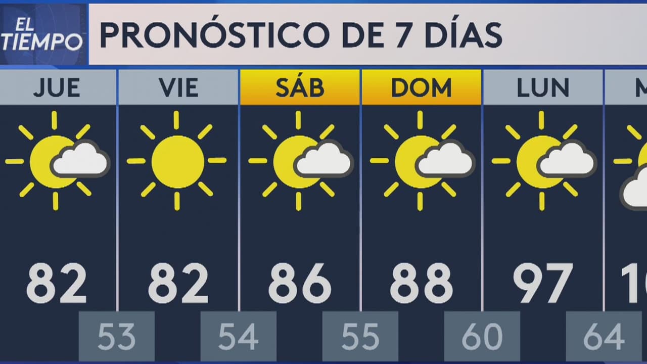 Espera temperaturas alrededor de los 80 grados Fahrenheit con cielos totalmente despejados y soleados por la tarde.