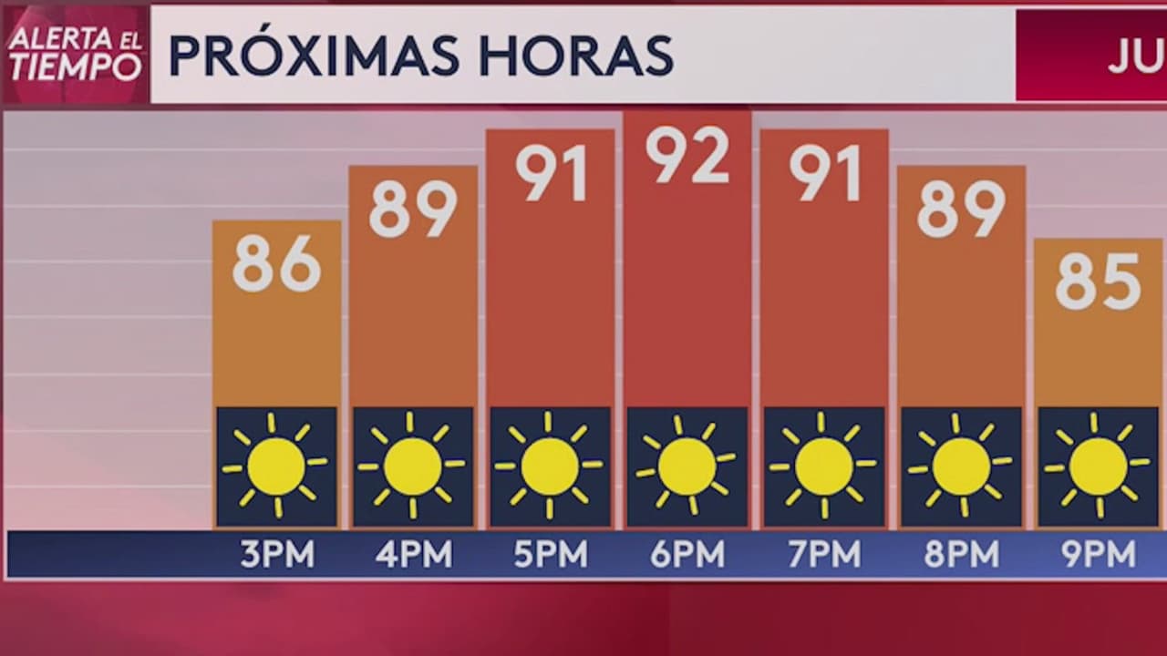Espera temperaturas máximas alrededor de los 92 grados Fahrenheit con cielos totalmente despejados y soleados.