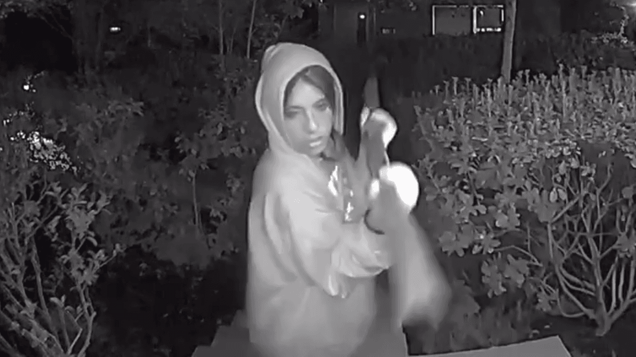 En la grabación de apenas 24 segundos captada por la cámara del timbre se alcanza a ver el rostro de la responsable, quien vestía una sudadera con capucha.