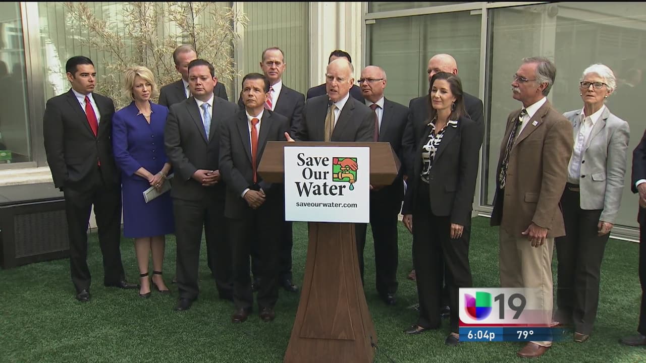 El gobernador de California, Jerry Brown, se reunió con 14 alcaldes para anunciar su propuesta para la conservación del agua, proyecto que incluye nuevos mecanismos y altas multas para quien desperdicie el vital líquido.
