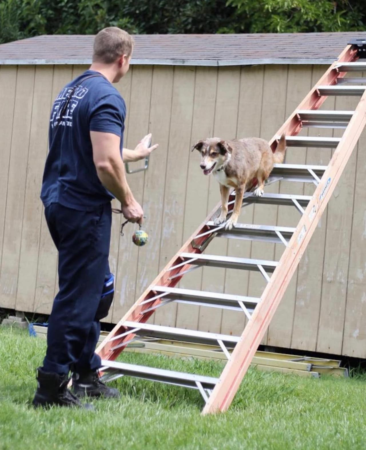 El equipo de bomberos recordó que Winnie fue rescatada por el ingeniero Brandon Andersen, en el refugio Search Dog Foundation, justo antes de que fuera sacrificada.