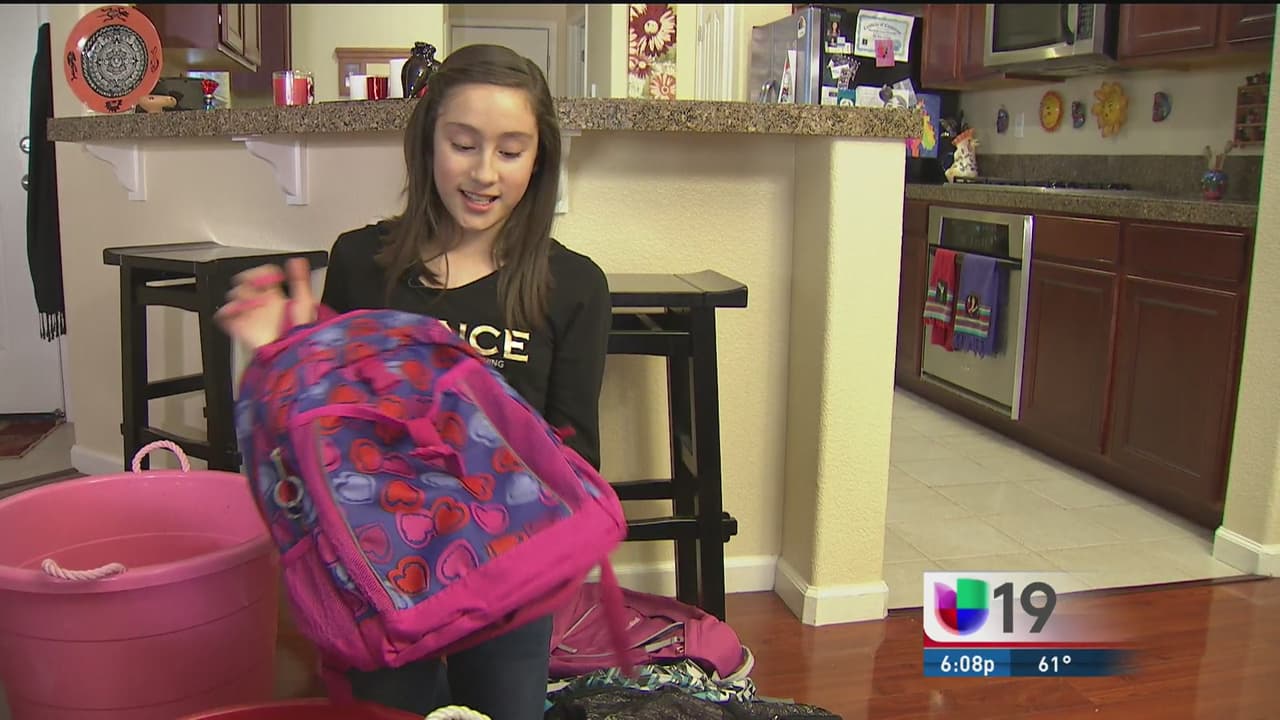 Una niña de la escuela primaria se ha dado a la tarea de recolectar mochilas para los desamparados.
