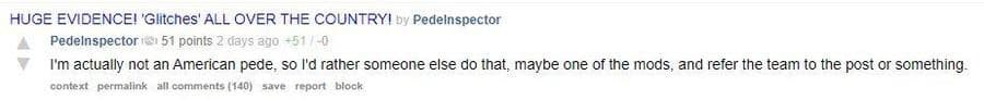 "PedeInspector", en otro momento de la serie de publicaciones, afirma no ser un "pede estadounidense". El apodo - pede - puede ser una referencia a una canción de dubstep, "Centipede", que a menudo se tocaba en los mítines de la campaña de Trump.