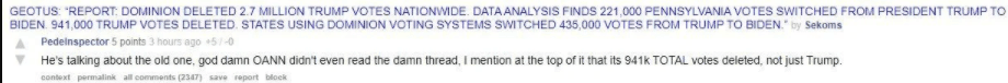 En un momento, durante la serie de publicaciones, "PedeInspector" afirma que One America News, un sitio web conservador, tiene los números confundidos.