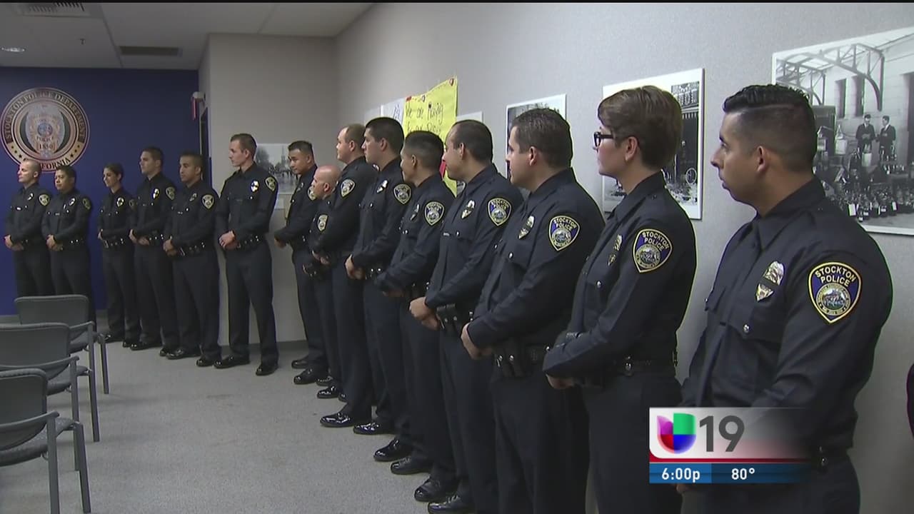 La ciudad de Stockton cuenta con nuevos oficiales de policía, este lunes 18 agentes, entre ellos varios hispanos, juraron lealtad a su comunidad.