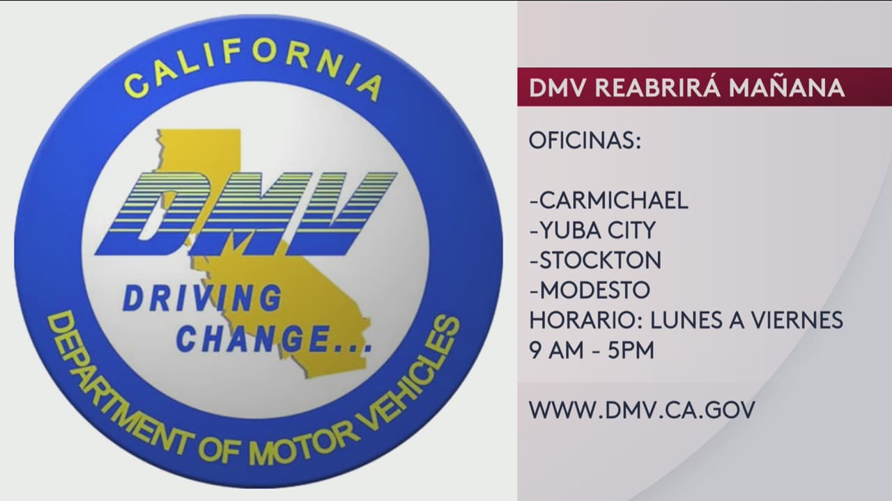 Se estima que unas 25 oficinas del Departamento de Motores y Vehículos (DMV), pero por el momento ninguna en la ciudad de Sacramento. Se recuerda que solo se atenderá con citas y para trámites que necesiten realizarse en persona.