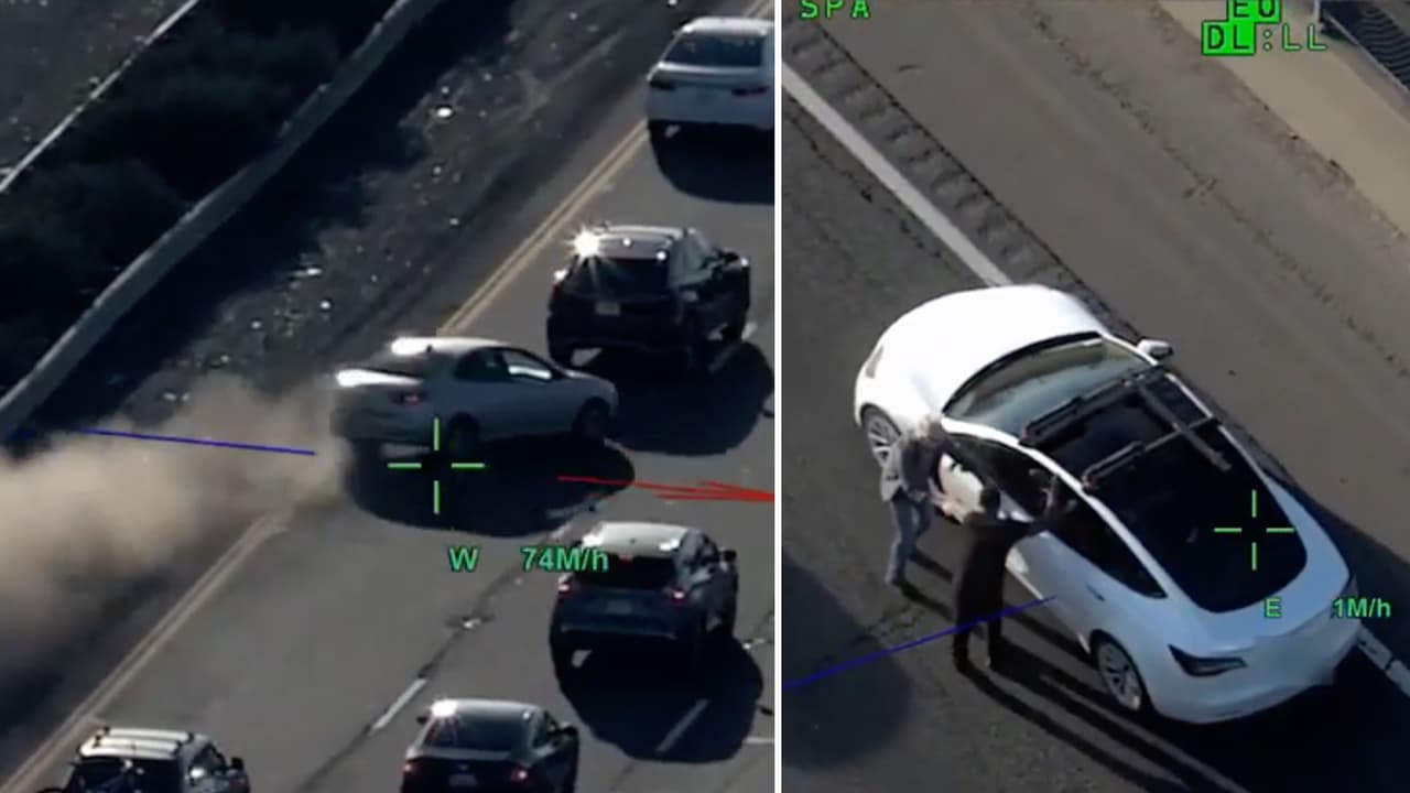 La Policía de Sacramento publicó videos grabados por cámaras corporales y un helicóptero que muestran una impresionante persecución que se inició cuando un hombre presuntamente robó un auto y manejó a más de 100 millas por hora sobre la autopista I-80.