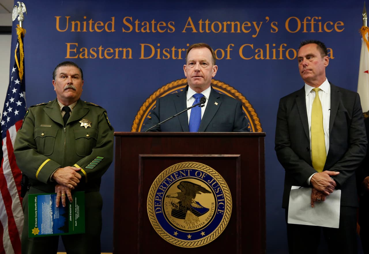 El Fiscal Federal McGregor W. Scott y el alguacil del condado El Dorado John D´Agostini expresaron que la muerte del oficial Brian Ishmael, el pasado 23 de octubre, fue en un plantío ilegal de marihuana donde se arrestaron a cuatro personas, dos son indocumentados, por lo que pidieron una revisión a la política santuario del estado y de la ley que legalizó la marihuana en California. (AP Photo/Rich Pedroncelli)