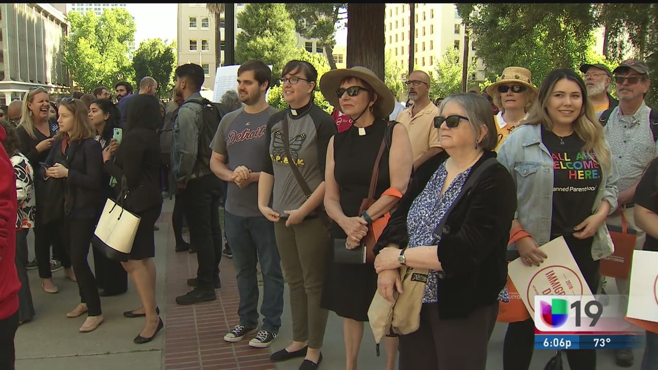 Activistas y decenas de personas llegaron hasta el Capitolio estatal para pedirle al gobernador, Jerry Brown, apruebe una ley que permita que todos los californianos tengan seguro médico sin importar su estatus migratorio.