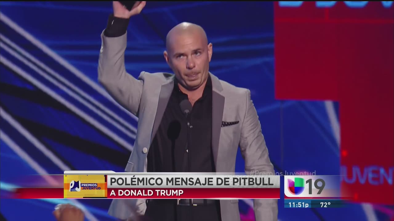 El cantante Pitbull aprovecho los micrófonos de premios juventud para enviarle un mensaje al magnate Donald Trump.