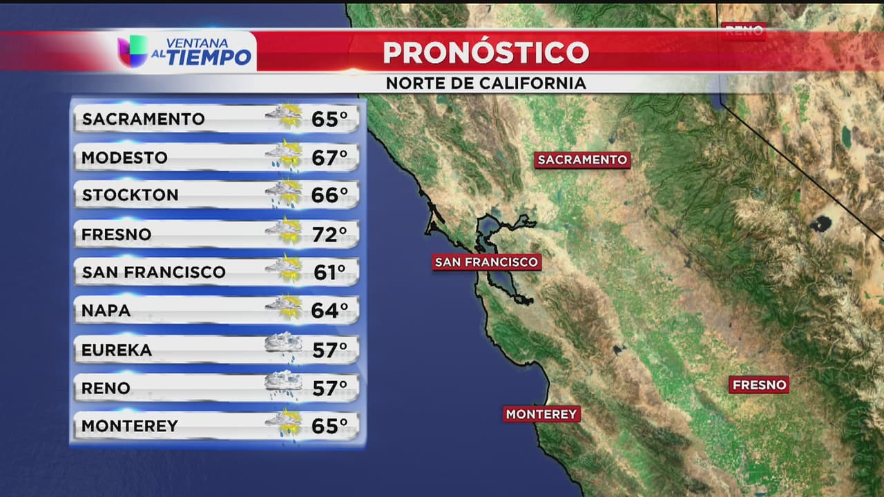 Un día con temperaturas frescas al norte de California, se esperan temperaturas máximas de 65 grados para Sacramento, 67 para Modesto y 66 para Stockton.