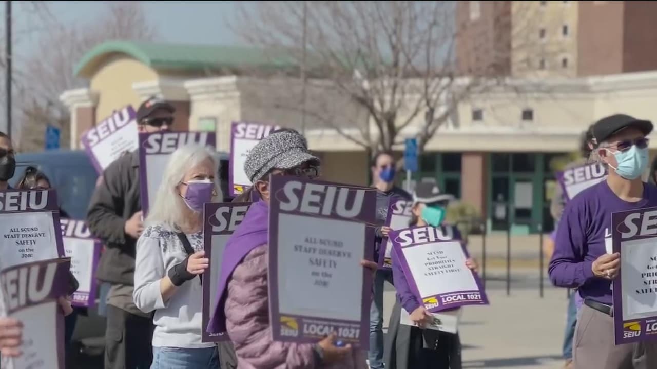 Protestan conductores de autobuses escolares en Sacramento para exigir mejores condiciones de trabajo y de salario