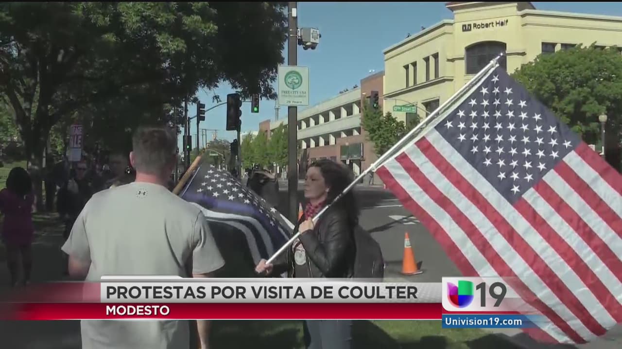 Protestas en Modesto por la visita de la conservadora Ann Coulter