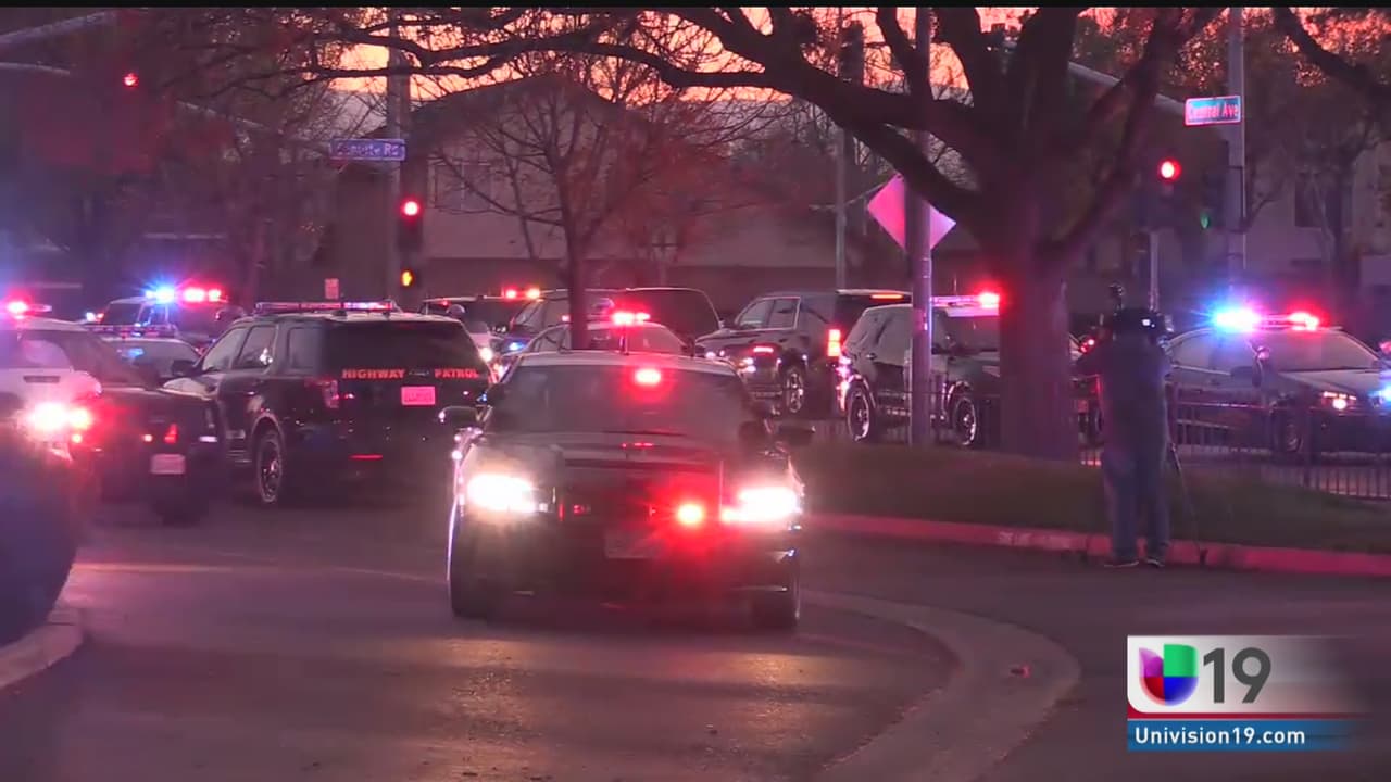 Residentes y agentes del orden en Tracy conmemoraron al agente que murió tras el impacto de un vehículo que iba a alta velocidad.