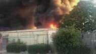 Bomberos llegaron a la cuadra 2100 de Evergreen Street para apagar las llamas en esta instalación de Regional Transit.