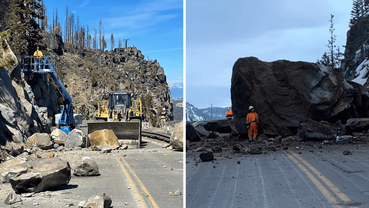 Los equipos de Caltrans han cerrado secciones de la carretera cerca de Lake Tahoe para derribar y quitar rocas antes de que se caigan solas cuando hay tráfico en la vía.