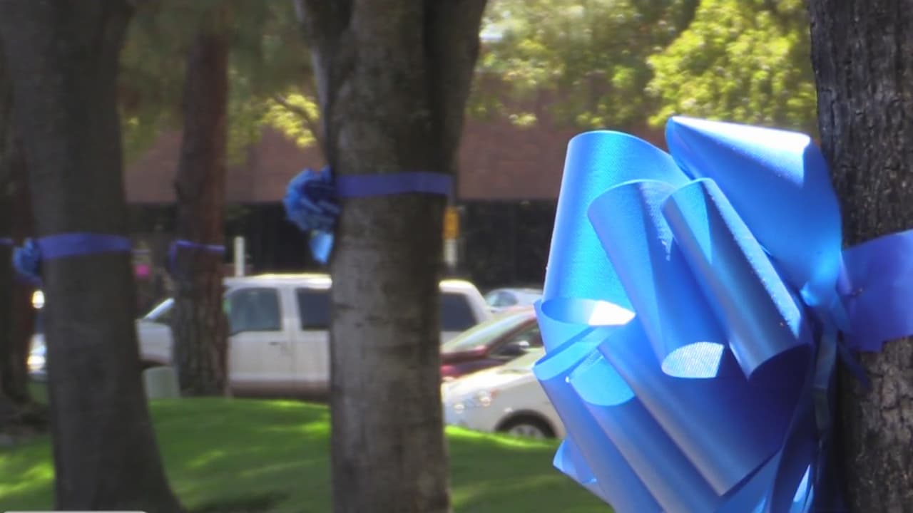 Residentes de Rancho Cordova homenajean con cintas azules en hogares y negocios al oficia que murió en un tiroteo este lunes
