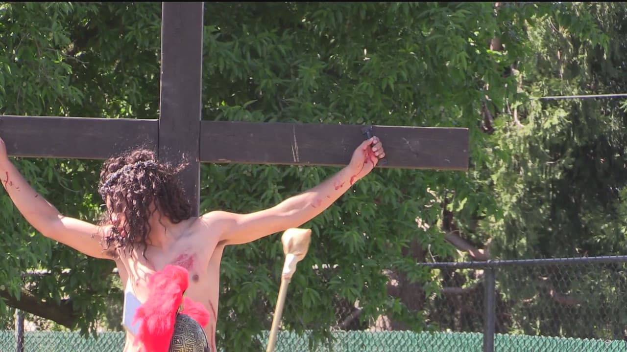 Cientos de fieles se dieron cita en el Santuario de Nuestra Señora de Guadalupe, donde se realizó una representación de la Pasión de Cristo.