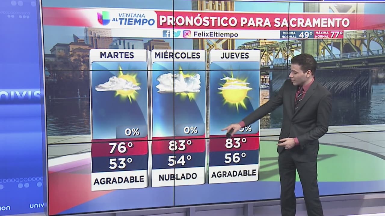 El meteorólogo Félix Hernández nos habla sobre las condiciones del tiempo que se esperan en Sacramento este lunes y el resto de la semana. Se prevé que toda la semana habrá temperaturas máximas por encima de los 80 grados.