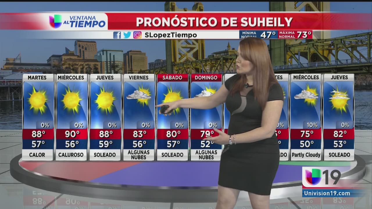 La meteoróloga Suheily López Belén nos habla sobre las condiciones del tiempo que se esperan en Sacramento este lunes y el resto de la semana. Hay regiones que tendrán más de 90 grados.