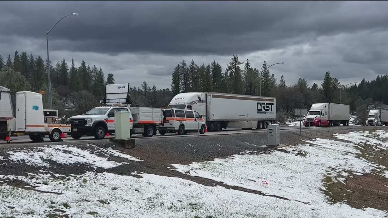 Una fuerte nevada afecta las condiciones de la carretera I 80, por lo que autoridades instalaron un punto de revisión de cadenas para camiones cerca de la zona de Dutch Flats; sin embargo, algunos conductores se muestran preocupados por la cantidad de autos que viajan sin este aditamento para la nieve.