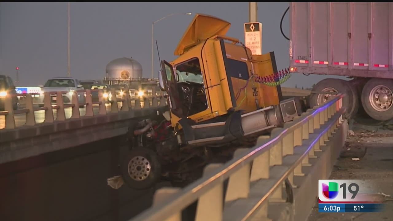 La madrugada de este martes un tráiler se accidentó sobre la I-5, quedando atravesado sobre la vía y a punto de caer del puente, el chofer resultó ileso y no se registró ninguna persona herida.
